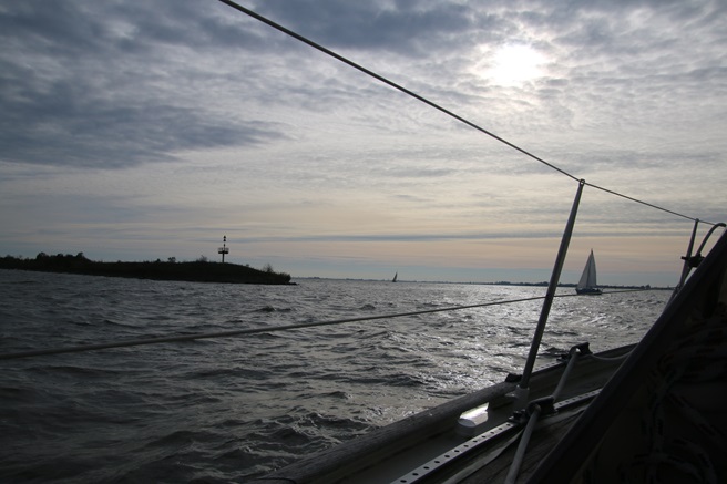 Het moet er toch van komen – we gaan vandaag op huis aan. Wekker om acht uur gezet en om kwart over negen varen we, flink ingepakt in veel lagen kleren, met een frisse zuidoostenwind op de genua op het Keteldiep.