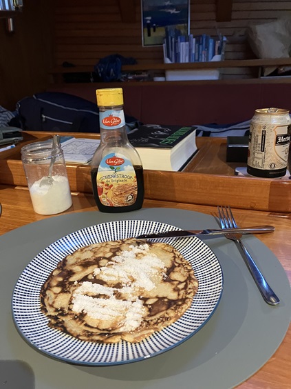 Terwijl we nagenieten eten we tomatensoep. En het is natuurlijk geen herfstvakantie zonder pannenkoeken!