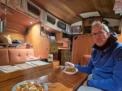 Tegen achten is het diner tijd. En om half tien is de afwas gedaan. Morgen kunnen we rustig aan doen; het is om 8:40uur laag water.