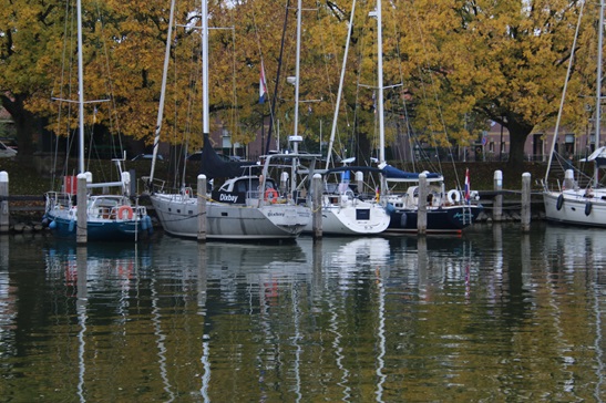 We worden wakker in een herfstig Enkhuizen. Op wat miezer na is het droog. Maar de bomen zijn in de herfstkleuren. En de blaadjes vallen ook. De scheepsdekken in de haven liggen vol. Veel bemanningen, met name het vrouwelijk deel, is druk de blaadjes in het water te krijgen. Wij gaan er vooralsnog vanuit dat de blaadjes (grotendeels) wel wegwaaien.