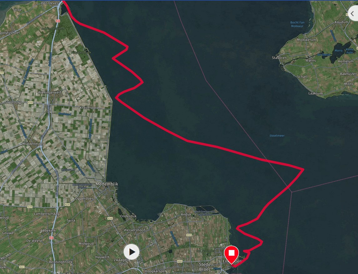De verwachting is noordoosten- tot noordenwind. Niet ideaal om naar de Waddenzee te komen. Daarbij waait het soms maar weinig met vlagen waardoor we dan niet zo scherp gaan. We gaan dus al kruisend onze weg. Beetje lettend op de wind – is de wind meer naar het noordoosten gedraaid dan gaan we liefst naar het noordwesten – zodat we zoveel mogelijk opschieten richting Den Oever. Verder kunnen we niet natuurlijk over land en moeten we ook rekening houden met ondieptes (zoals het Vrouwenzand en later Oude en Nieuwe Zeug voor de Wieringermeerpolder).